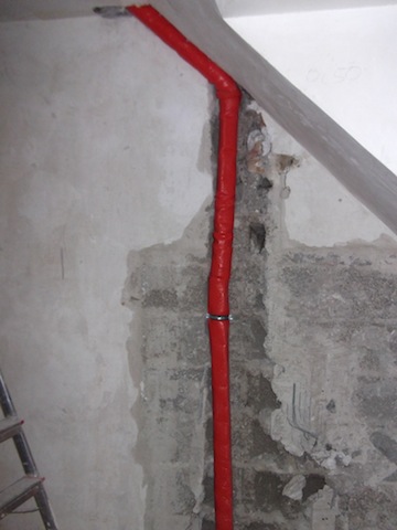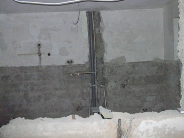 Damit es nicht allzu schwer fällt, schauen wir uns die frisch verputzten Wände im Haus an. Es gibt mittlerweile keine freigelegten Stellen mehr, die Schlitze und aufgestemmten Wände sind unter Rotband verschwunden. Im OG ist sogar schon in 2 Räumen die erste Feinputzschicht aufgetragen.