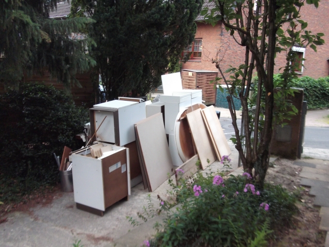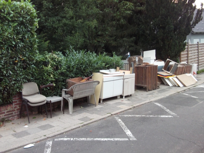Glücklicherweise blieben wir von „Sperrmüllsammlern“ weitestgehend verschont. Aufgrund der Masse mussten wir die Sachen auch noch in die Einfahrt stellen und so den Vorgarten über nacht für jedermann offen lassen. Nur kurz nachdem wir alles rausgestellt hatten fuhr einer vor und schnitt alle Kabel von den Elektrogeräten ab. Kupfer scheint noch ne gute Mark zu bringen.