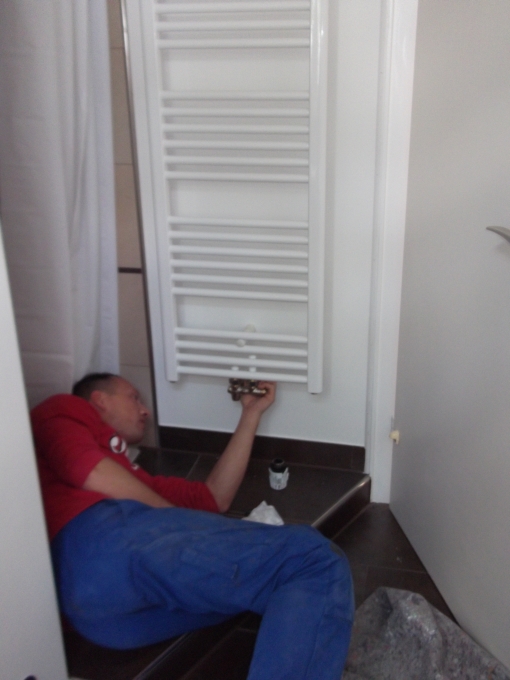 Am Freitag war die Hütte wieder voll mit Handwerkern. Der Installateur montierte den Heizkörper im Bad und legte noch das HängeWC im EG um ein paar Zentimeter tiefer. Das war im Vergleich zum WC im Bad nämlich gute 4cm zu hoch geraten.