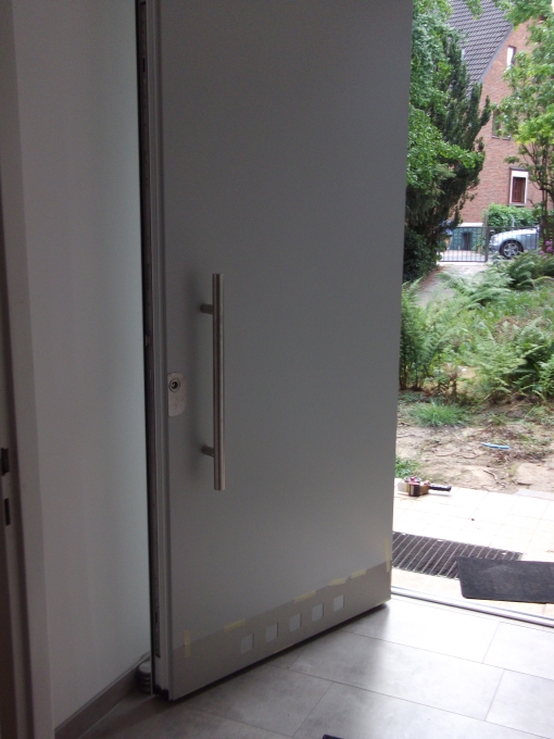 Am Mittwoch wurde endlich das Sockelblech für die Haustür geliefert.