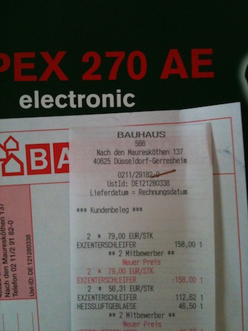 Der Spartipp hat 1a geklappt! Habe einen Bosch Pex 270AE Exzenterschleifer gekauft.